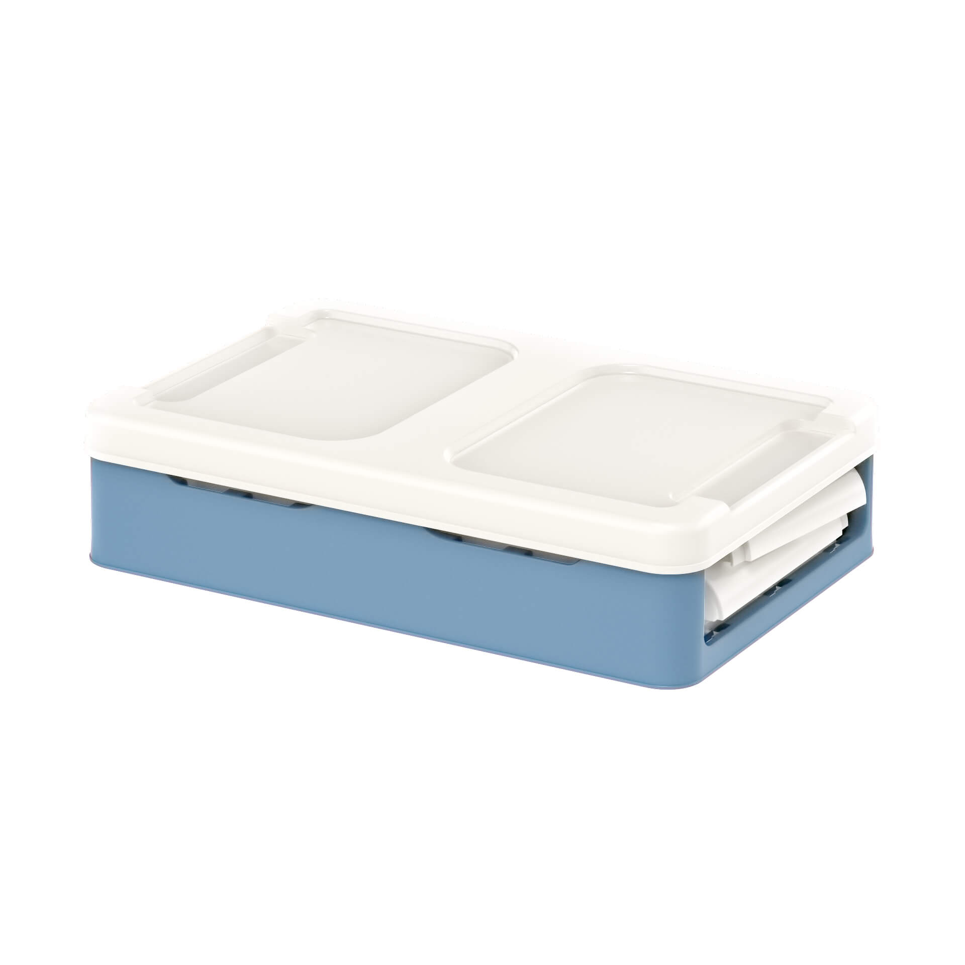 Ящик пластиковый складной белый, дно синее, 370х240х240 мм