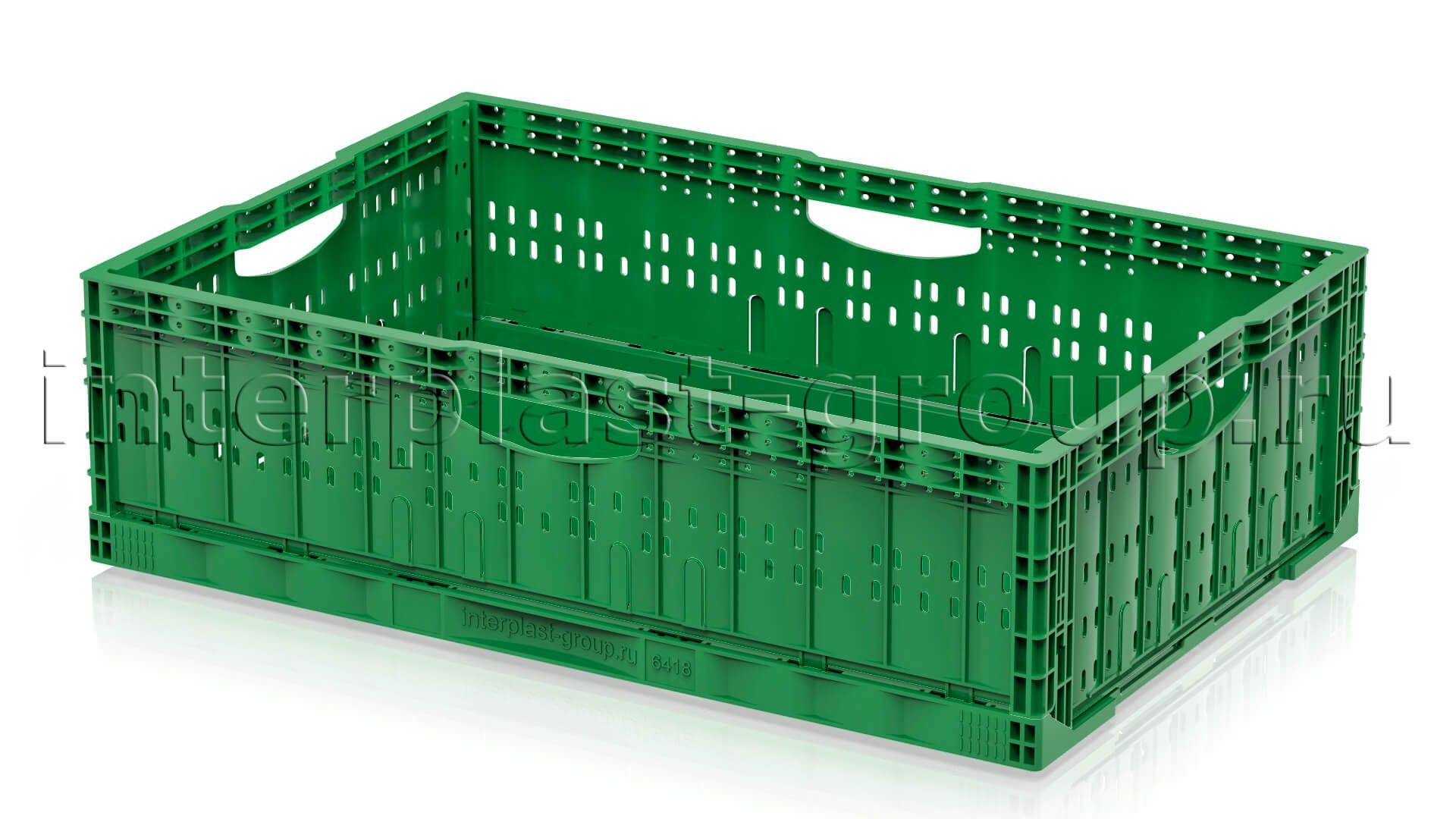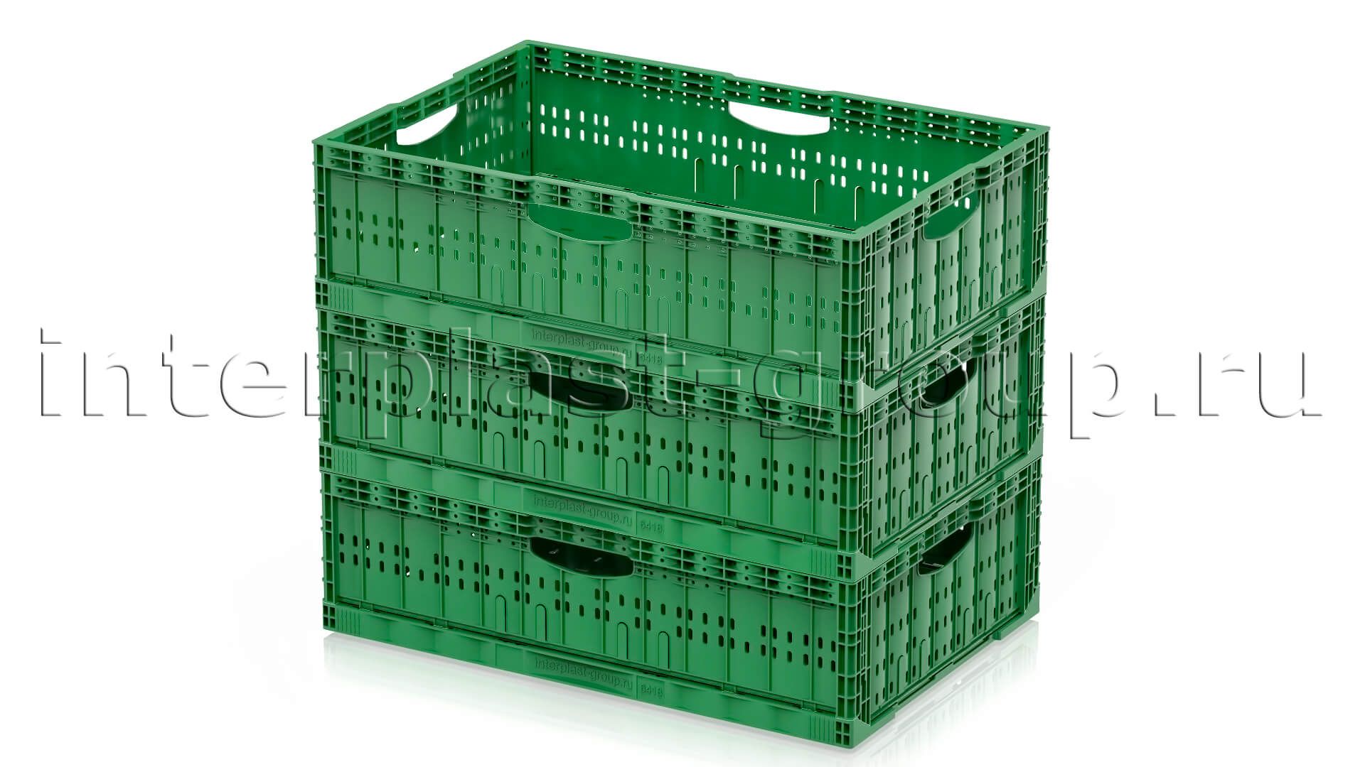 Складные ящики разработаны и спроектированы для хранения и перемещения плодо-овощных культур как внутри производства, так и между торговыми точками и складами. Благодаря функции складывания значительно экономят место при использовании в качестве возвратной тары. Перфорированные стенки обеспечивают сохранение свежести и сочность продуктов перфорации абсолютно на всех стадиях логистики. Штабелируются на паллетах 1200х1000 и 1200х800.