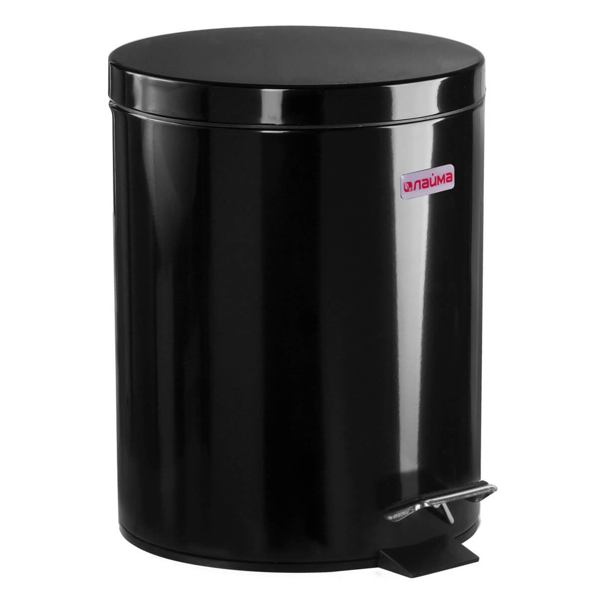 Ведро-контейнер для мусора (урна) с педалью LAIMA Classic, 5 л, черное, глянцевое, металл, со съемным внутренним ведром